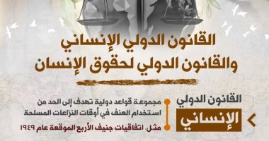 رصدت الصفحة الرسمية لموقع مقالات تنسيقية شباب الأحزاب والسياسيين، عبر موقع التواصل الاجتماعى فيس بوك، في إنفوجراف الفرق بين القانون الدولي الإنساني والقانون الدولي لحقوق الإنسان، جاء فيه أن القانون الدولى الإنسانى هو مجموعة قواعد دولية تهدف الى الحد من استخدام العنف في أوقات النزاعات المسلحة مثل اتفاقيات جنيف الأربع الموقعة عام 1949.