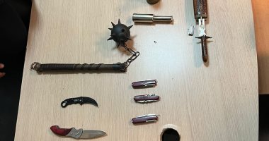وقام أحمد عمر مدير الحركة بتكليف هانى محمود مأمور الجمرك بتفتيش حقائب الراكب وتفتيشه ذاتيا فتبين وجود خنجرين و4 سيوف و5 مطاوى مخبأة بين طيات ملابسه داخل الحقائب .