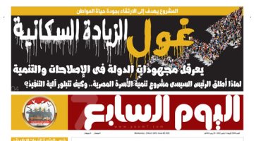 تنشر “اليوم السابع” فى عددها المطبوع الصادر غدا الأربعاء، العديد من القضايا والملفات المهمة، فى مقدمتها، المشروع يهدف إلى الارتقاء بجودة حياة المواطن.. غول الزيادة السكانية يعرقل مجهودات الدولة فى الإصلاحات والتنمية.. لماذا أطلق الرئيس السيسى مشروع تنمية الأسرة المصرية.. وكيف تتبلور آلية التنفيذ؟.