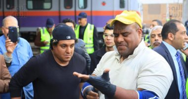 يحاول المصارع أشرف كابونجا والمصنَّف “أقوى رجل فى العالم” من موسوعة جينيس للأرقام القياسية سحب قطار مترو أنفاق بذراعيه، مساء اليوم الأربعاء، فى ورشة شبرا للمترو.