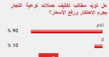 وأيد 90% من القراء مطالب تكثيف حملات توعية التجار بجرم الاحتكار ورفع الأسعار، بينما رفض 10% فقط من القراء موضوع الاستطلاع.