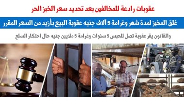 رصد موقع “برلماني“، المتخصص في الشأن التشريعى والنيابى، في تقرير له تحت عنوان: “عقوبات رادعة للمخالفين بعد تحديد سعر الخبز الحر”، استعرض خلاله عقوبات تصل للحبس والغرامة حال البيع بأزيد من السعر المقرر، وكذا مخالفة المواصفات المقررة.