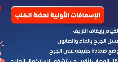 كشفت وزارة الصحة والسكان عن الإسعافات الأولية لعضة الكلب وذلك للحماية من الإصابة بمرض السعار.