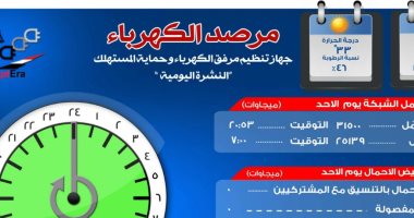مرصد الكهرباء 14 ألف 50 ميجا وات احتياطي بالشبكة اليوم